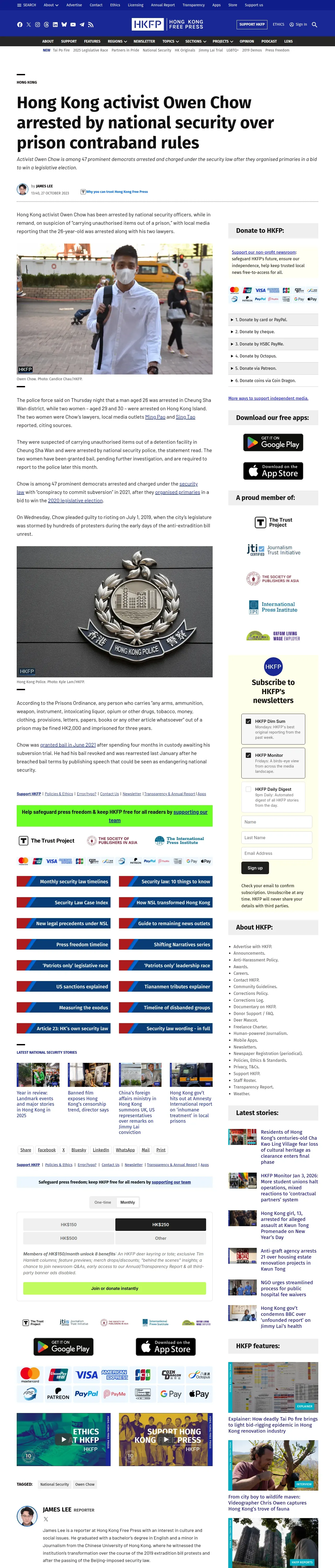 https://hongkongfp.com:443/2023/10/27/hong-kong-activist-owen-chow-arrested-by-national-security-over-prison-contraband-rules/