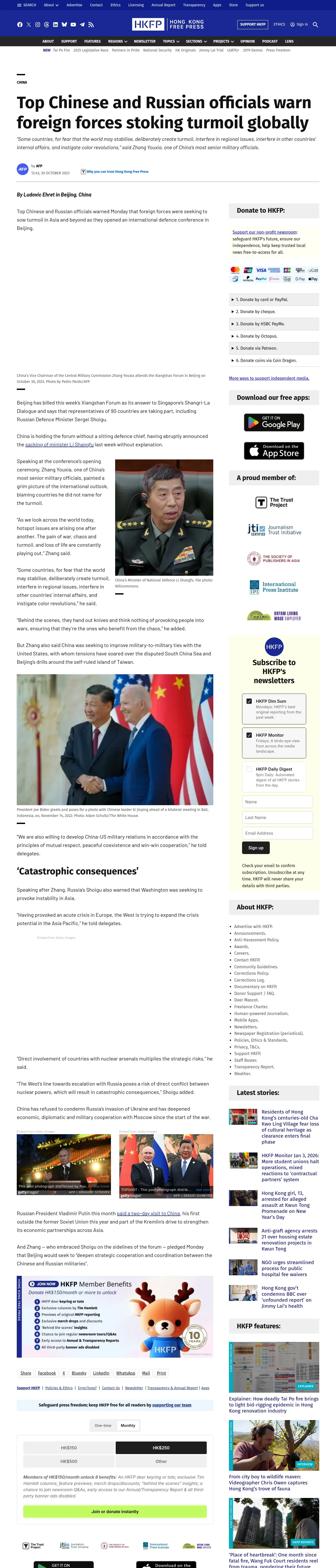 https://hongkongfp.com:443/2023/10/30/top-chinese-and-russian-officials-warn-foreign-forces-stoking-turmoil-globally/