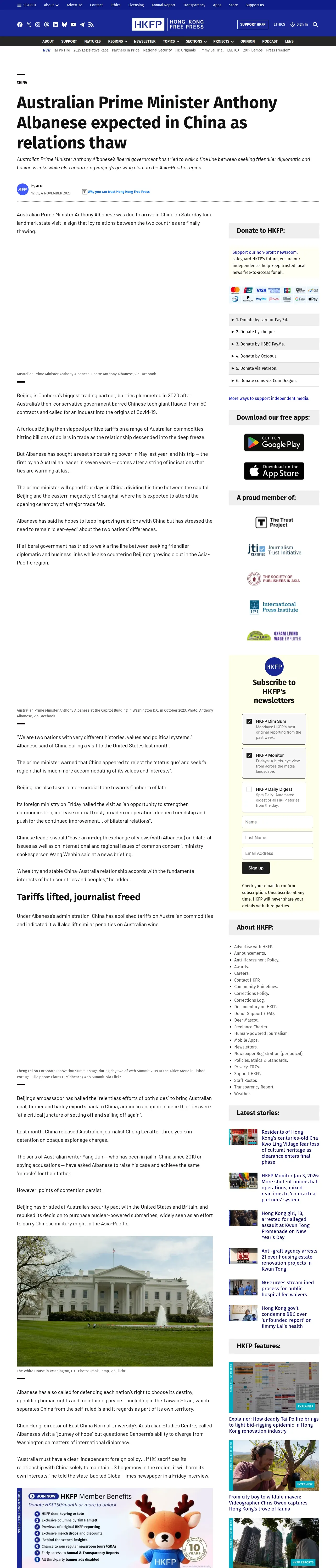 https://hongkongfp.com:443/2023/11/04/australian-prime-minister-anthony-albanese-expected-in-china-as-relations-thaw/