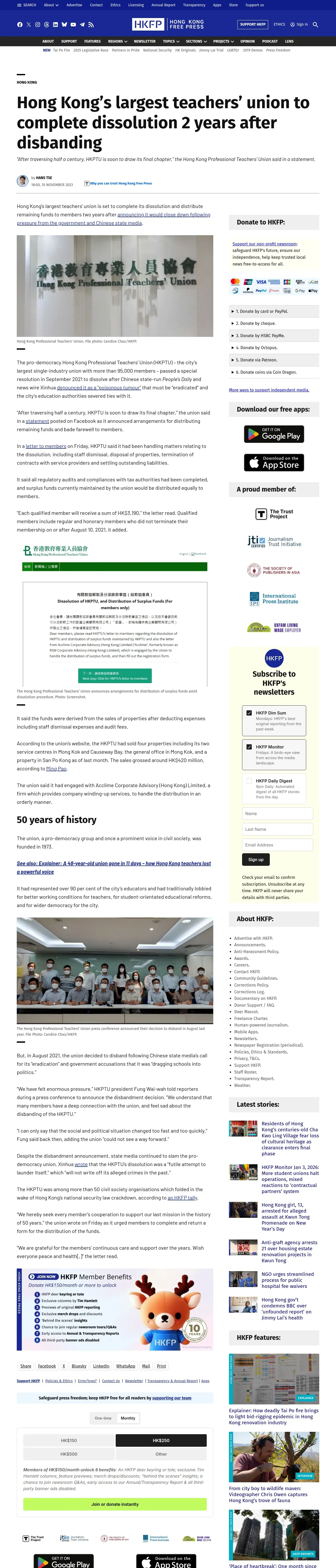 https://hongkongfp.com:443/2023/11/10/hong-kongs-largest-teachers-union-to-complete-dissolution-2-years-after-disbanding/