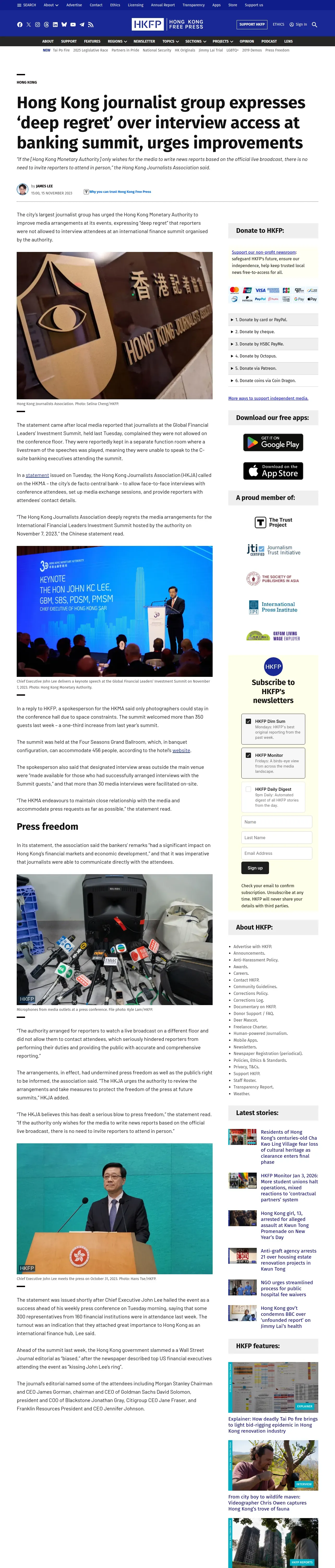 取得元URL: https://hongkongfp.com:443/2023/11/15/hong-kong-journalist-group-expresses-deep-regret-over-interview-access-at-banking-summit-urges-improvements/