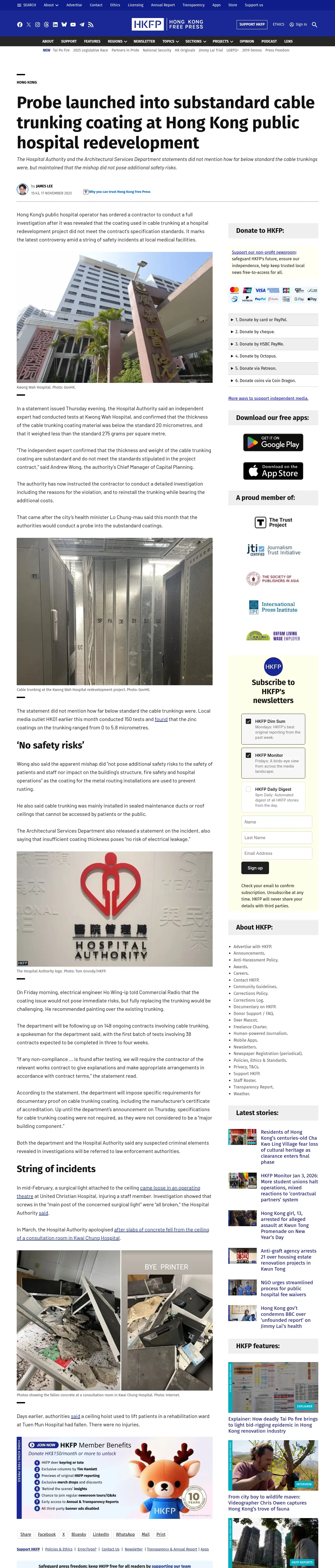 https://hongkongfp.com:443/2023/11/17/probe-launched-into-substandard-cable-trunking-coating-at-hong-kong-public-hospital-redevelopment/