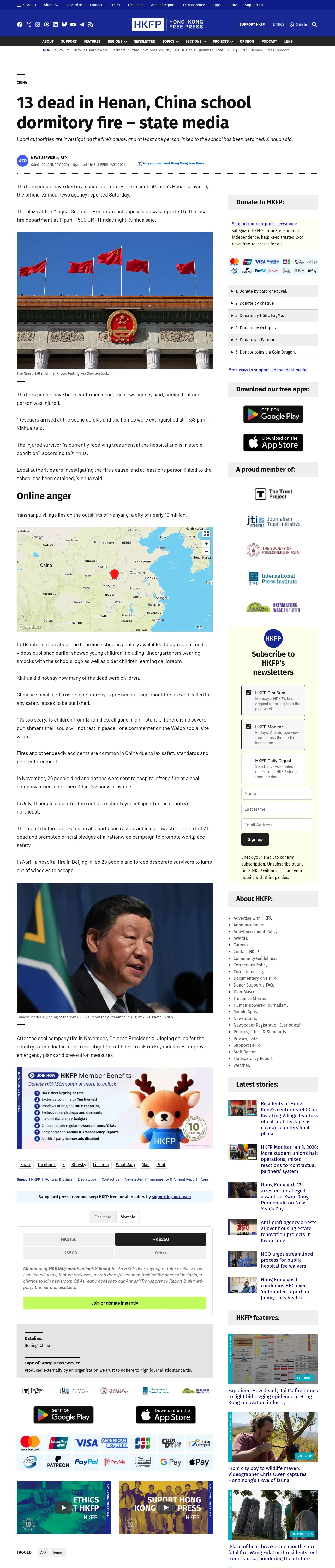 https://hongkongfp.com:443/2024/01/20/13-dead-in-henan-china-school-dormitory-fire-state-media/
