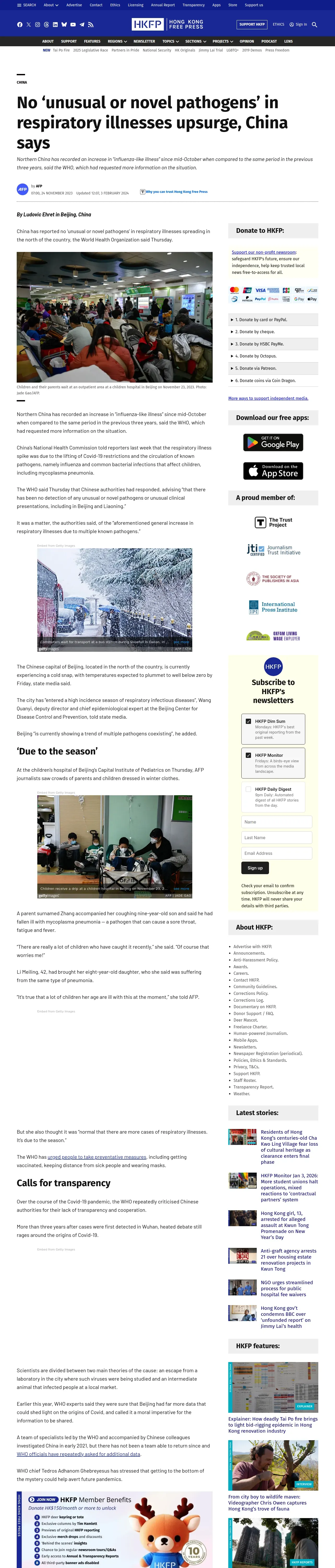 https://hongkongfp.com:443/2023/11/24/no-unusual-or-novel-pathogens-in-respiratory-illnesses-upsurge-china-says/