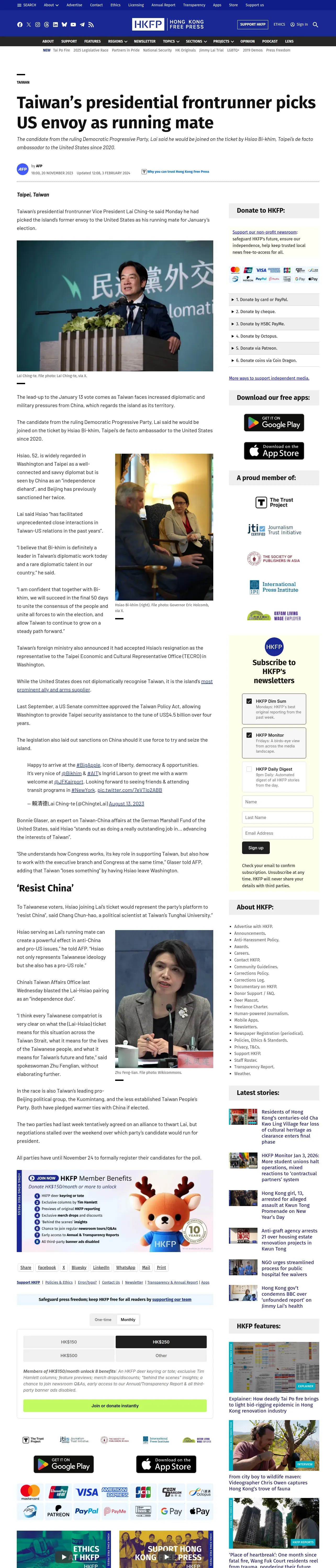https://hongkongfp.com:443/2023/11/20/taiwans-presidential-frontrunner-picks-us-envoy-as-running-mate/