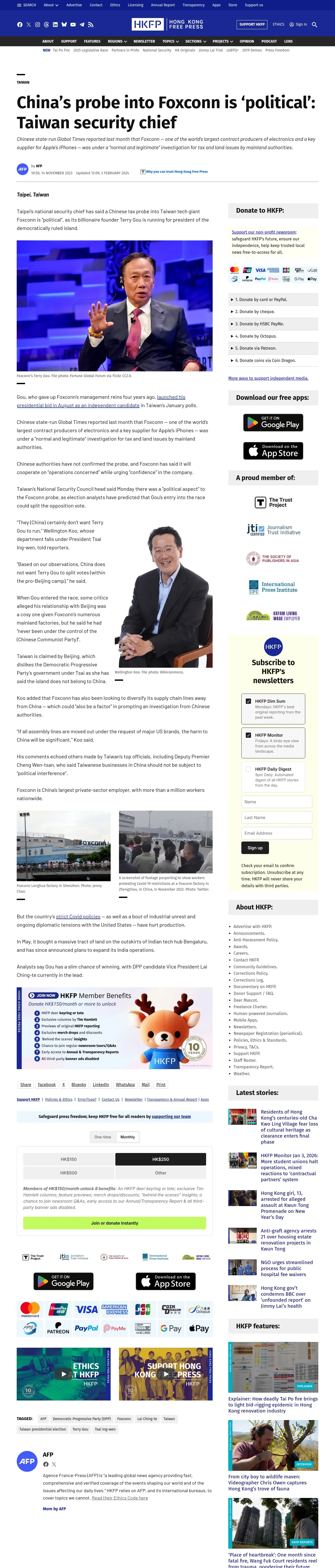 https://hongkongfp.com:443/2023/11/14/chinas-probe-into-foxconn-is-political-taiwan-security-chief/