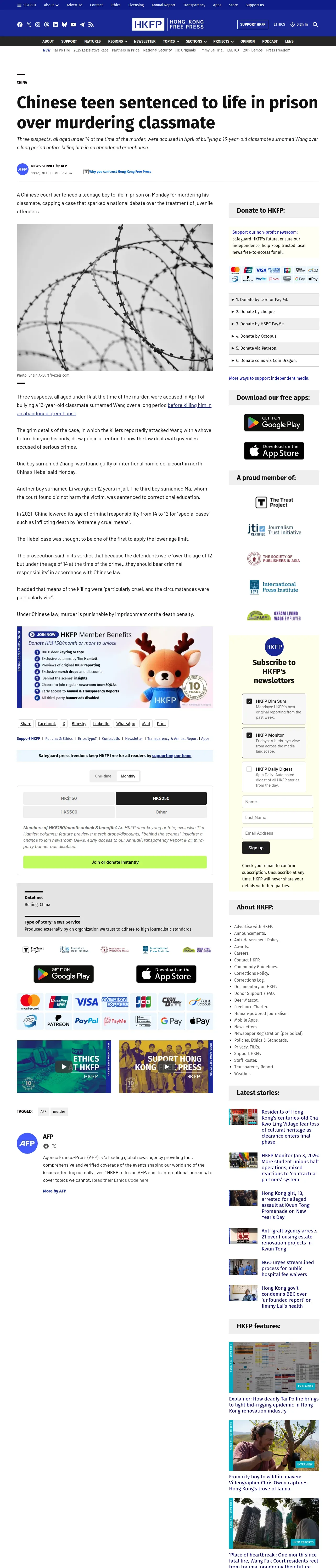 https://hongkongfp.com:443/2024/12/30/chinese-teen-sentenced-to-life-in-prison-over-murdering-classmate/