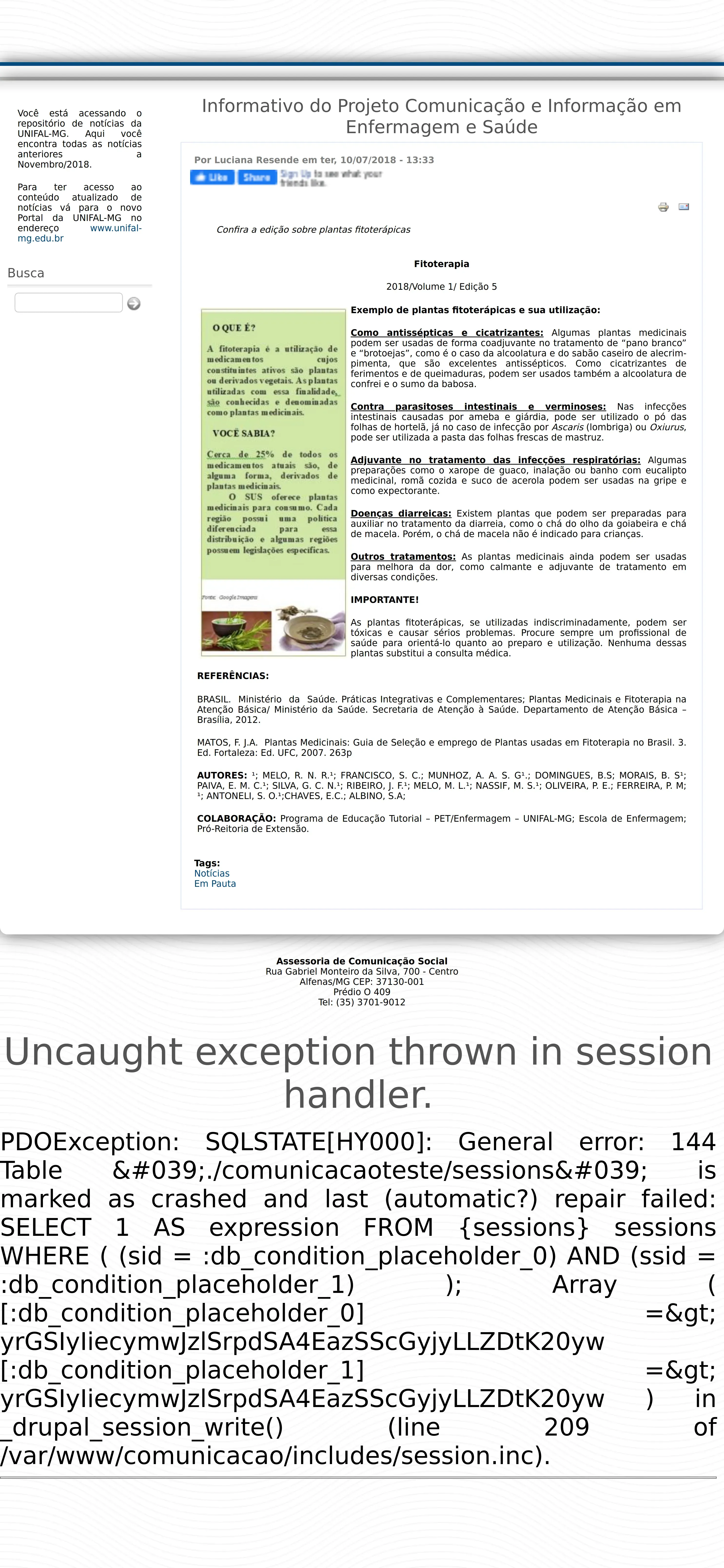 https://unifal-mg.edu.br:443/comunicacao/informativo-do-projeto-comunicacao-e-informacao-em-enfermagem-e-saude-fitoterapia