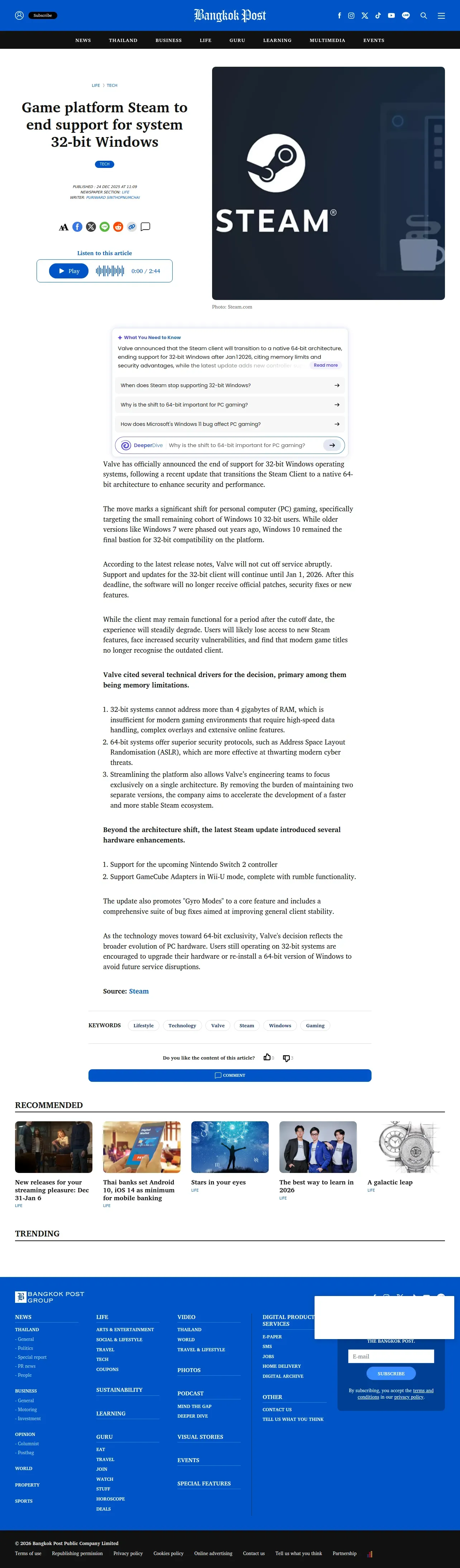 https://www.bangkokpost.com:443/life/tech/3162715/game-platform-steam-to-end-support-for-system-32bit-windows