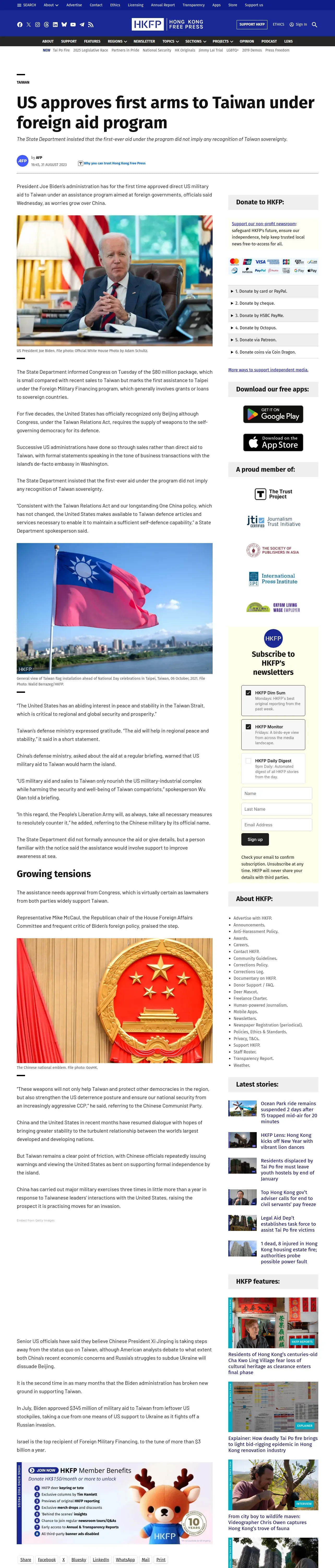 https://hongkongfp.com:443/2023/08/31/us-approves-first-arms-to-taiwan-under-foreign-aid-program/