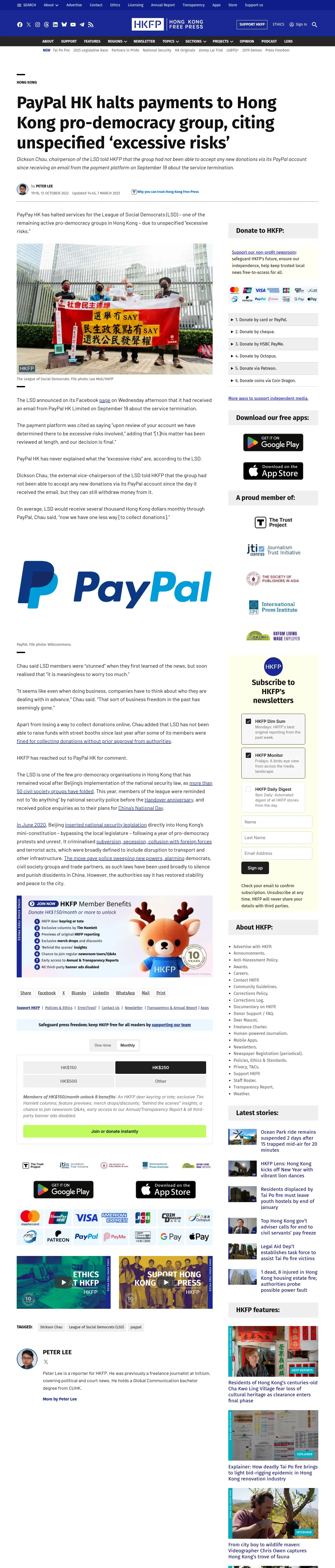 https://hongkongfp.com:443/2022/10/12/paypal-hk-halts-payments-to-hong-kong-pro-democracy-group-citing-unspecified-excessive-risks/
