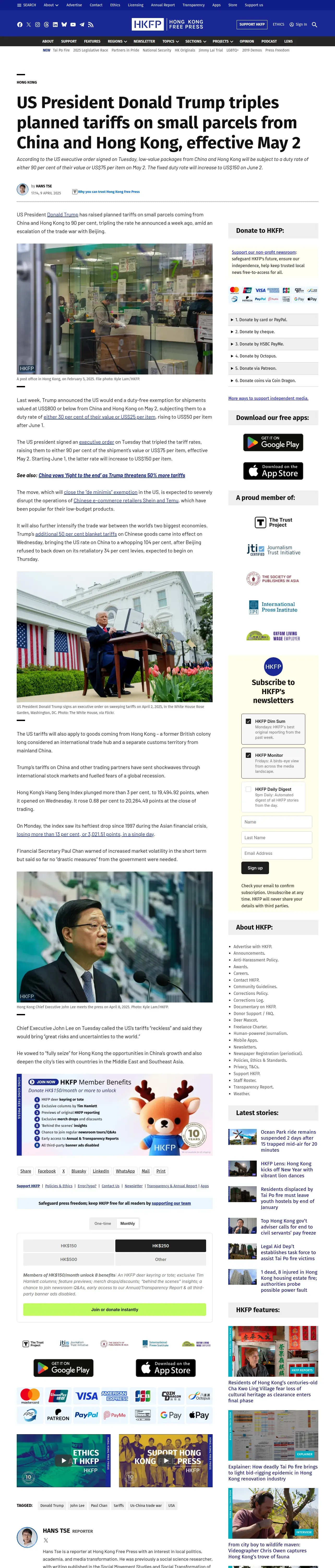 https://hongkongfp.com:443/2025/04/09/us-president-donald-trump-triples-planned-tariffs-on-small-parcels-from-china-and-hong-kong-effective-may-2/