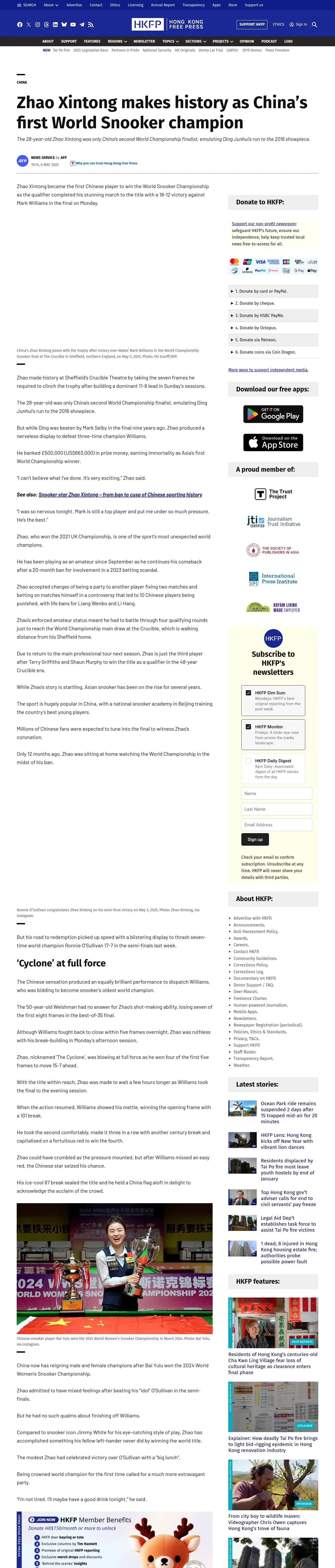 https://hongkongfp.com:443/2025/05/06/zhao-xintong-makes-history-as-chinas-first-world-snooker-champion/