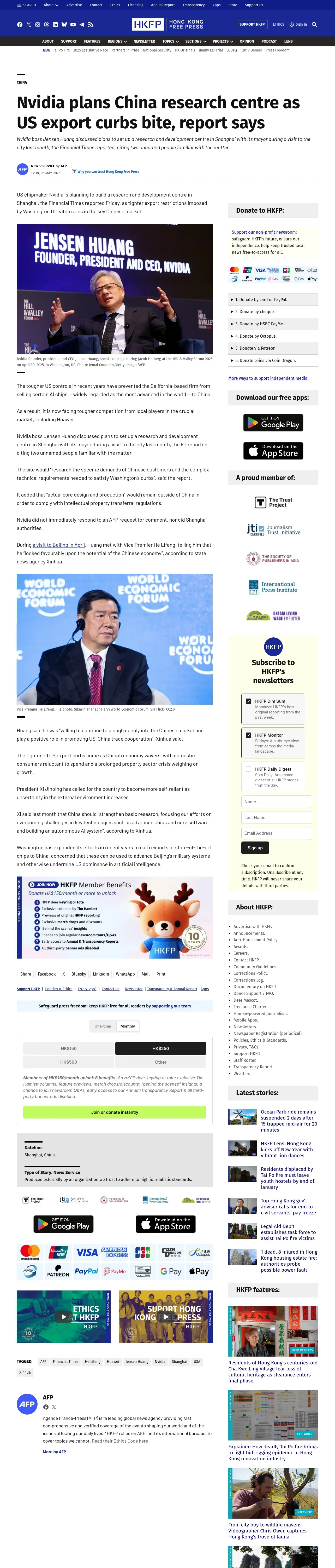 取得元URL: https://hongkongfp.com:443/2025/05/16/nvidia-plans-china-research-centre-as-us-export-curbs-bite-report-says/