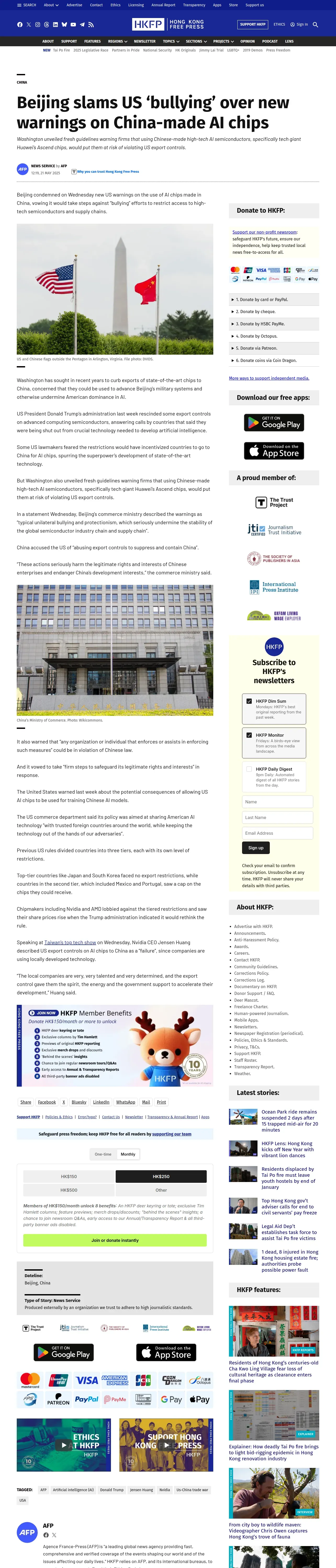 https://hongkongfp.com:443/2025/05/21/beijing-slams-us-bullying-over-new-warnings-on-china-made-ai-chips/
