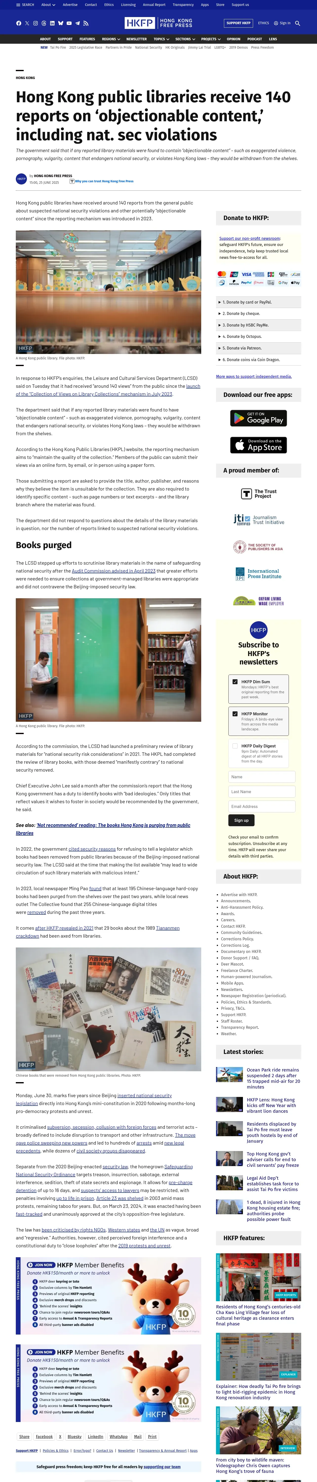 https://hongkongfp.com:443/2025/06/25/hong-kong-public-libraries-receive-140-reports-on-objectionable-content-including-nat-sec-violations/