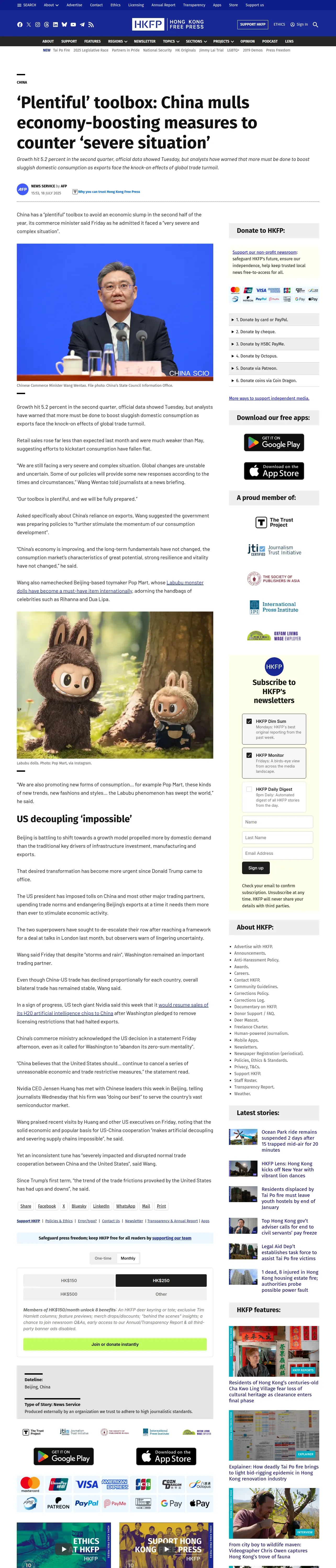 https://hongkongfp.com:443/2025/07/18/plentiful-toolbox-china-mulls-economy-boosting-measures-to-counter-severe-situation/