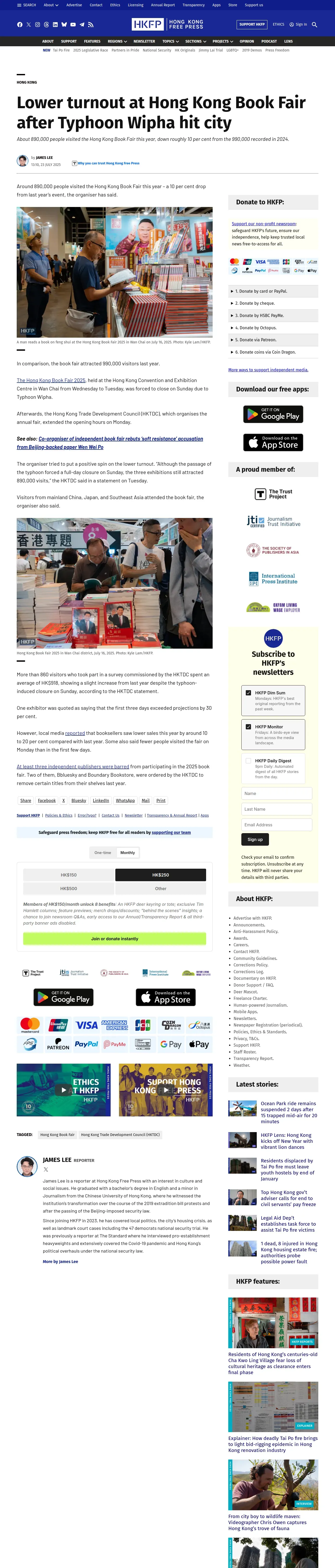 https://hongkongfp.com:443/2025/07/23/lower-turnout-at-hong-kong-book-fair-after-typhoon-wipha-hit-city/