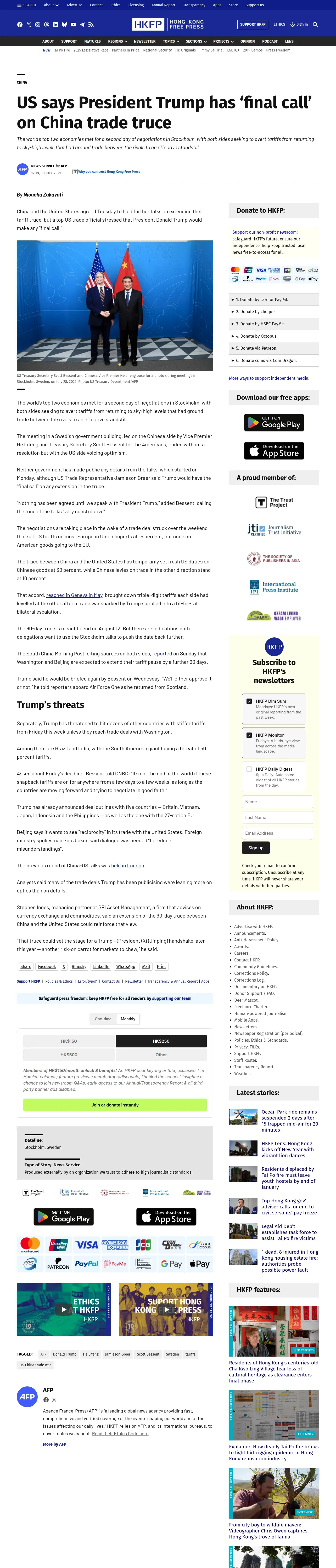 https://hongkongfp.com:443/2025/07/30/us-says-president-trump-has-final-call-on-china-trade-truce/