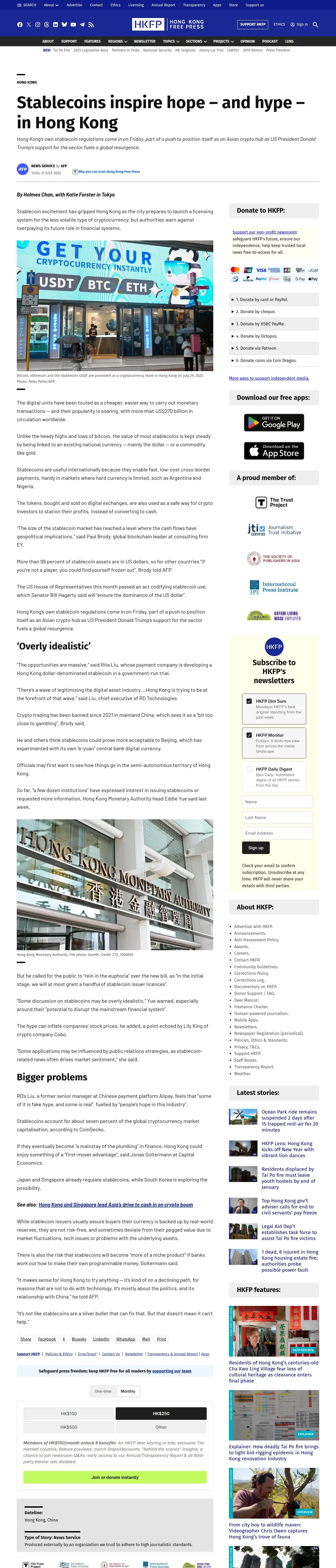 https://hongkongfp.com:443/2025/07/31/stablecoins-inspire-hope-and-hype-in-hong-kong/