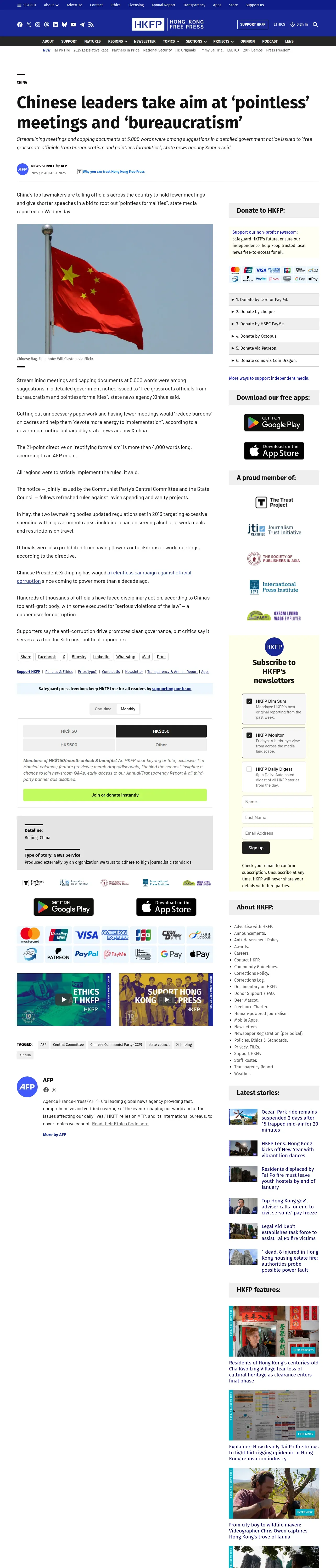 取得元URL: https://hongkongfp.com:443/2025/08/06/chinese-leaders-take-aim-at-pointless-meetings-and-bureaucratism/