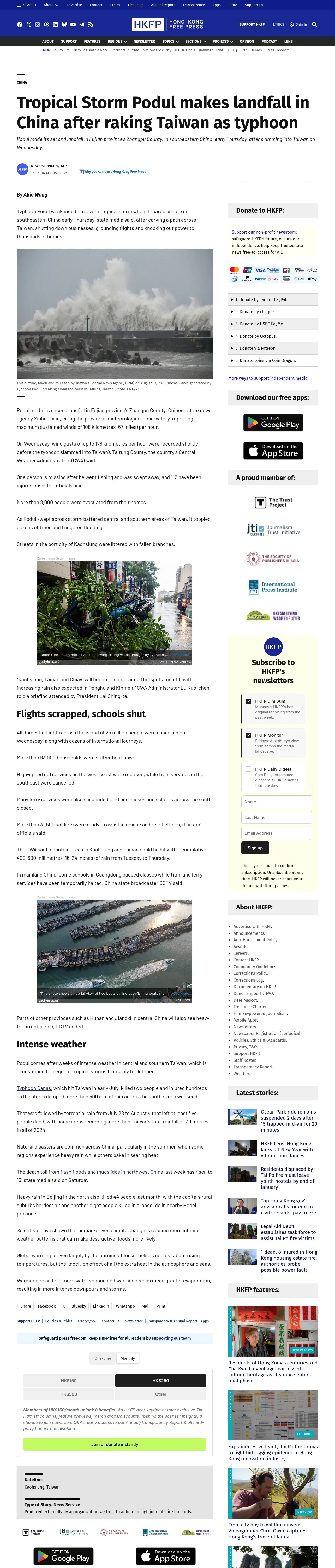 取得元URL: https://hongkongfp.com:443/2025/08/14/tropical-storm-podul-makes-landfall-in-china-after-raking-taiwan-as-typhoon/