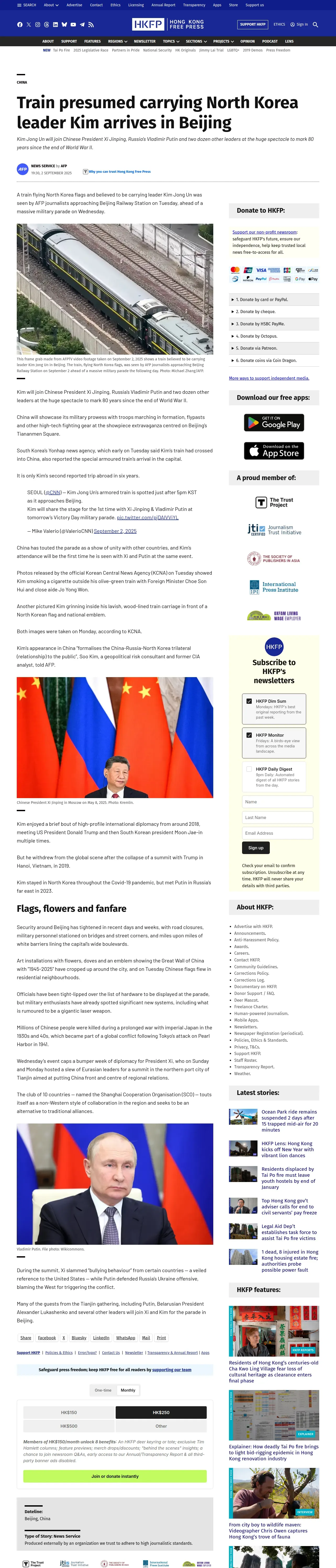 取得元URL: https://hongkongfp.com:443/2025/09/02/train-presumed-carrying-north-korea-leader-kim-arrives-in-beijing/