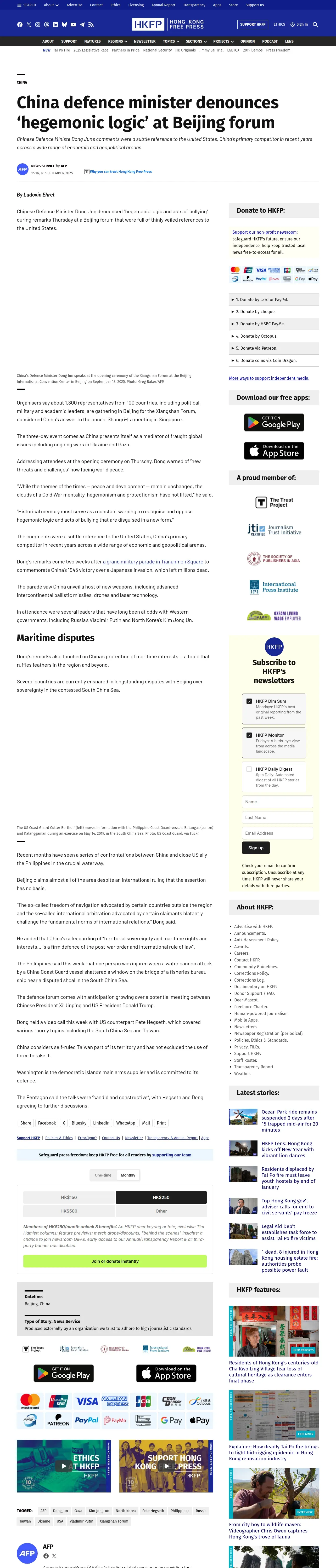 https://hongkongfp.com:443/2025/09/18/china-defence-minister-denounces-hegemonic-logic-at-beijing-forum/