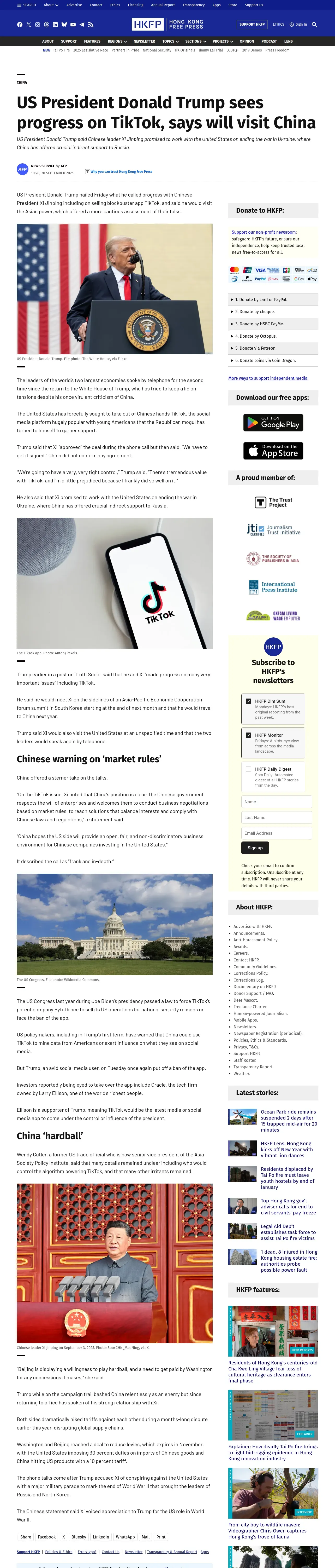 https://hongkongfp.com:443/2025/09/20/us-president-donald-trump-sees-progress-on-tiktok-says-will-visit-china/