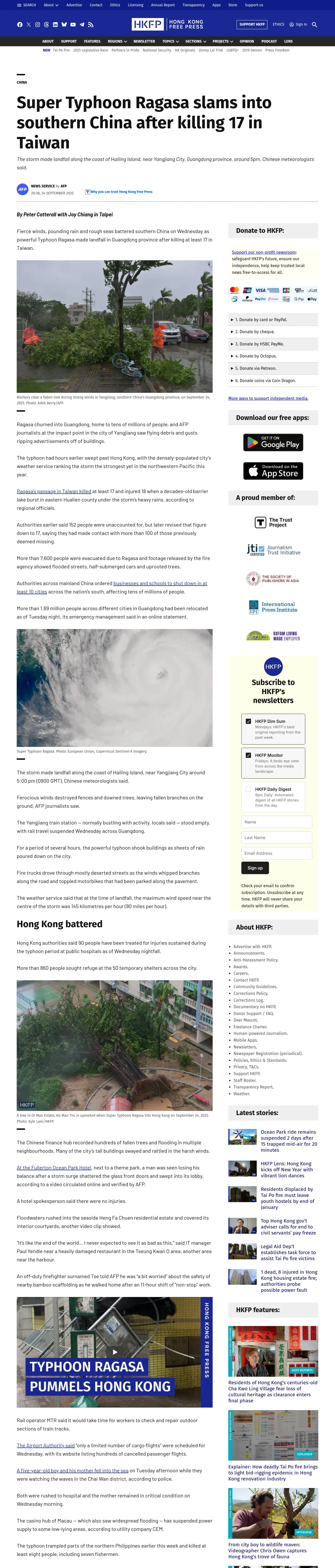 取得元URL: https://hongkongfp.com:443/2025/09/24/typhoon-ragasa-slams-into-southern-china-after-killing-17-in-taiwan/