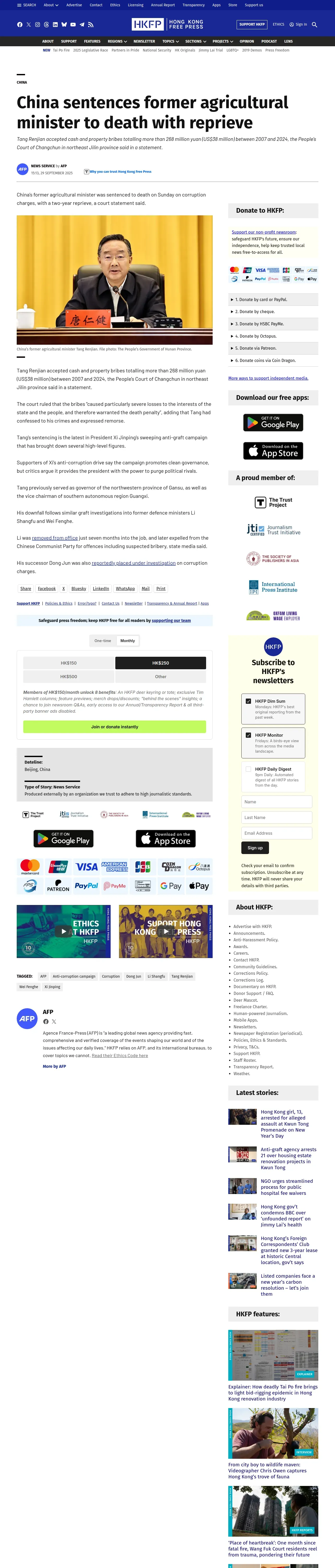 https://hongkongfp.com:443/2025/09/29/china-sentences-former-agricultural-minister-to-death-with-reprieve/