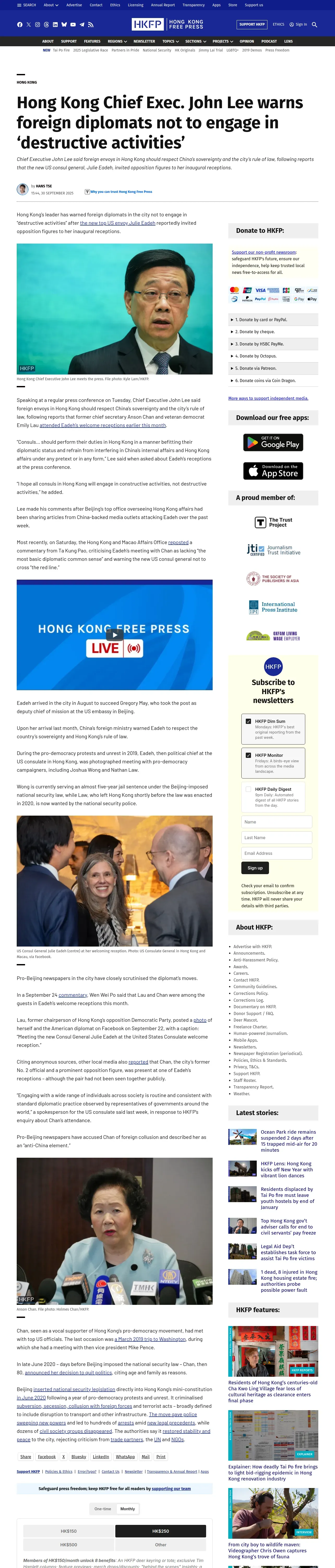 https://hongkongfp.com:443/2025/09/30/hong-kong-chief-exec-john-lee-warns-foreign-diplomats-not-to-engage-in-destructive-activities/