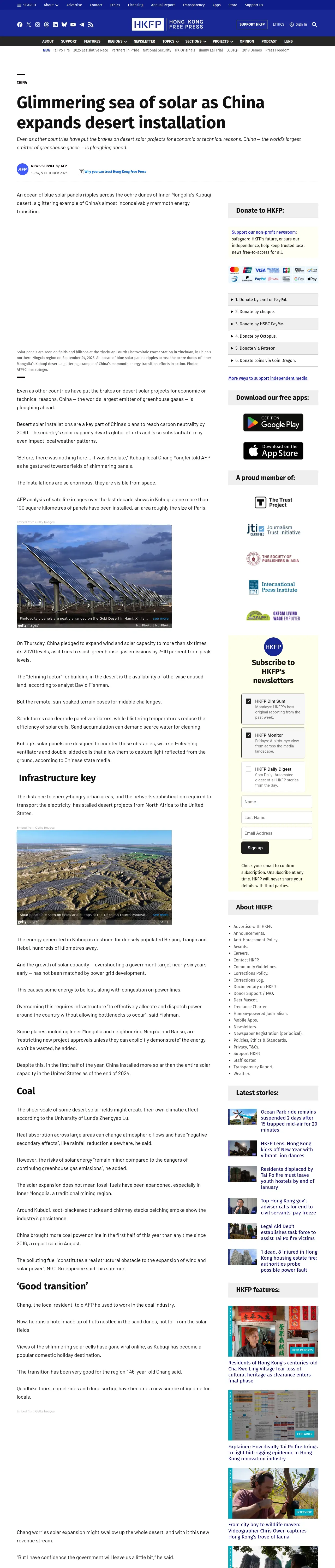 取得元URL: https://hongkongfp.com:443/2025/10/05/glimmering-sea-of-solar-as-china-expands-desert-installation/