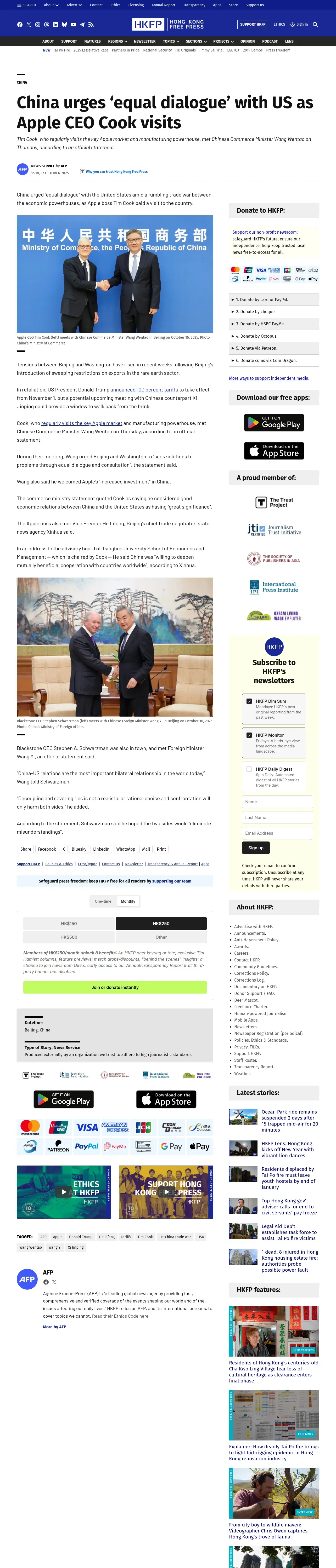 https://hongkongfp.com:443/2025/10/17/china-urges-equal-dialogue-with-us-as-apple-ceo-cook-visits/