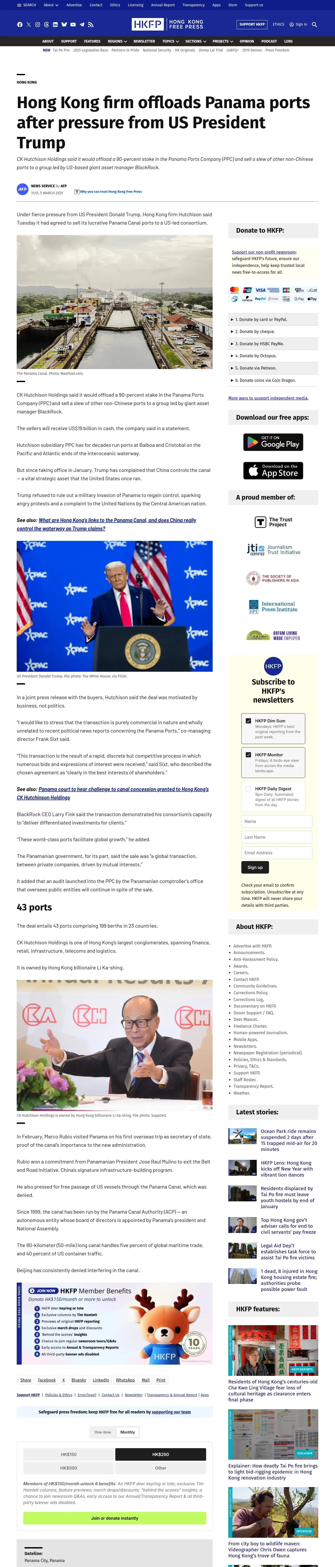 取得元URL: https://hongkongfp.com:443/2025/03/05/hong-kong-firm-offloads-panama-ports-after-pressure-from-us-president-trump/