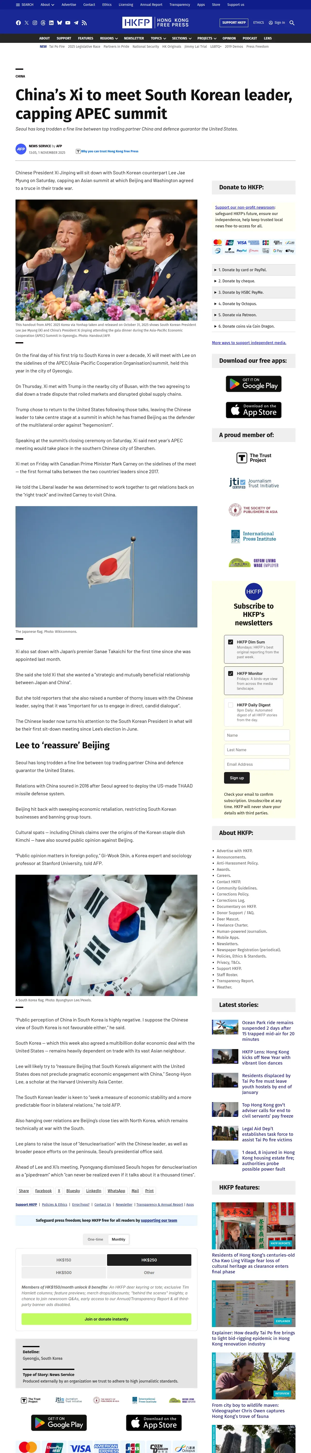 https://hongkongfp.com:443/2025/11/01/chinas-xi-to-meet-south-korean-leader-capping-apec-summit/