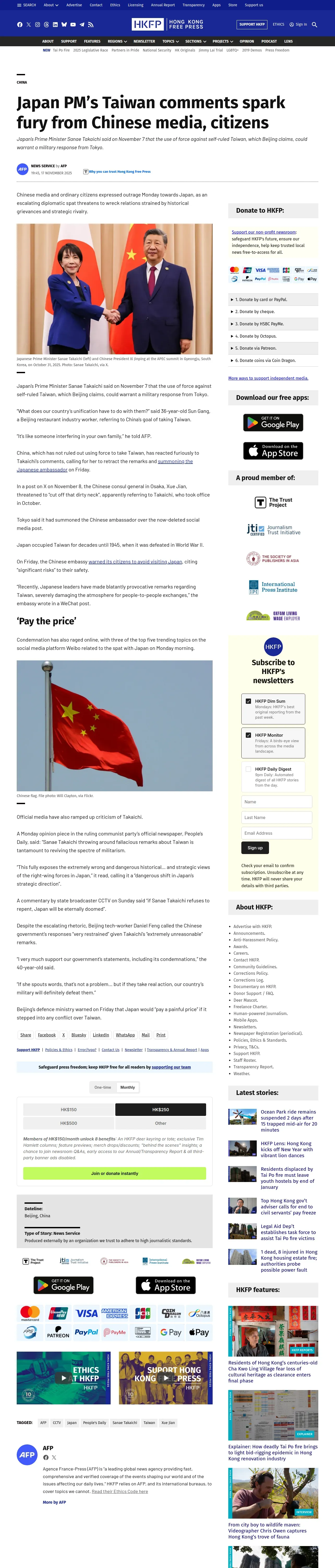 https://hongkongfp.com:443/2025/11/17/japan-pms-taiwan-comments-spark-fury-from-chinese-media-citizens/