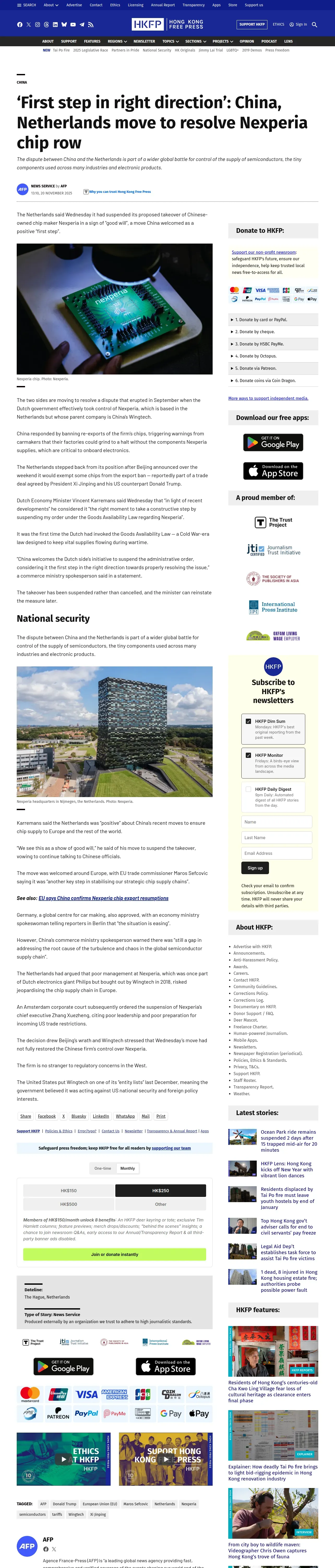 https://hongkongfp.com:443/2025/11/20/first-step-in-right-direction-china-netherlands-move-to-resolve-nexperia-chip-row/