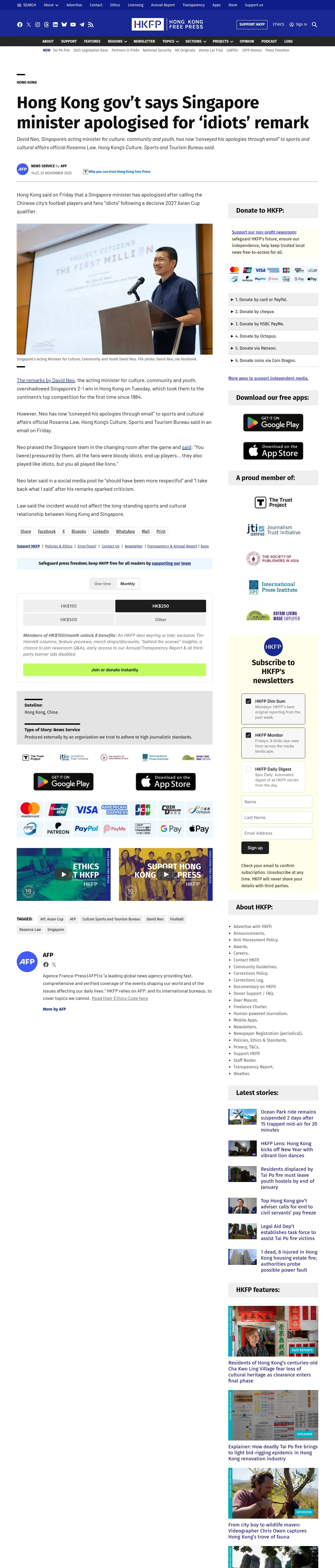 取得元URL: https://hongkongfp.com:443/2025/11/22/hong-kong-govt-says-singapore-minister-apologised-for-idiots-remark/