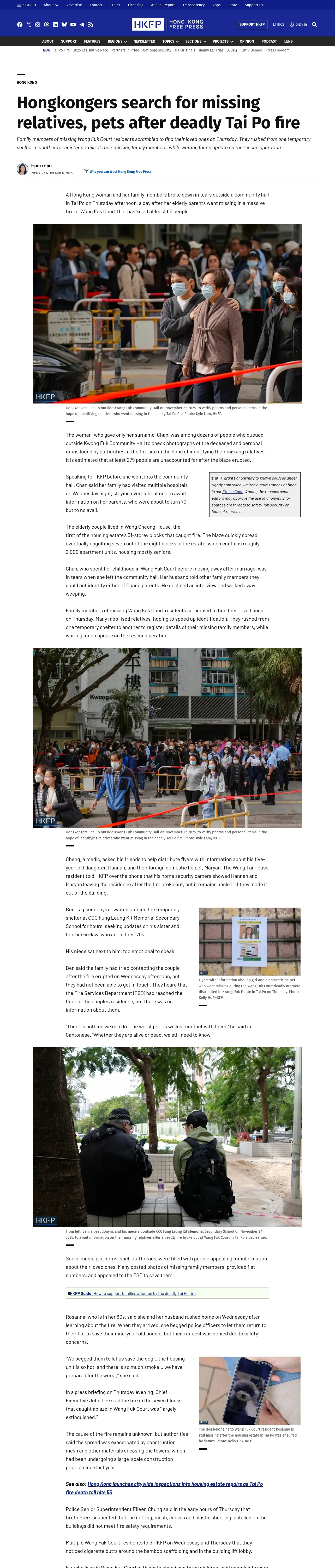取得元URL: https://hongkongfp.com:443/2025/11/27/hongkongers-search-for-missing-relatives-pets-after-deadly-tai-po-fire/