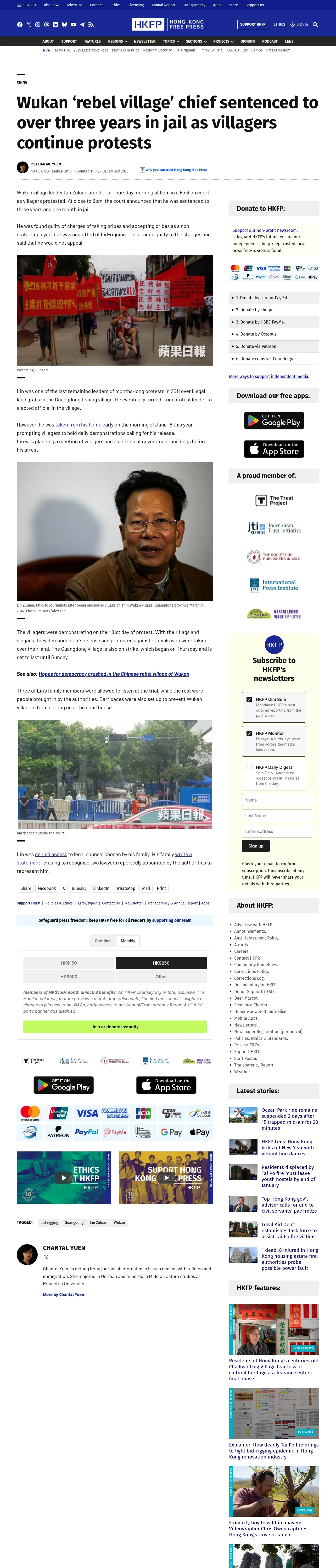 https://hongkongfp.com:443/2016/09/08/wukan-rebel-village-chief-sentenced-three-years-jail-villagers-continue-protests/