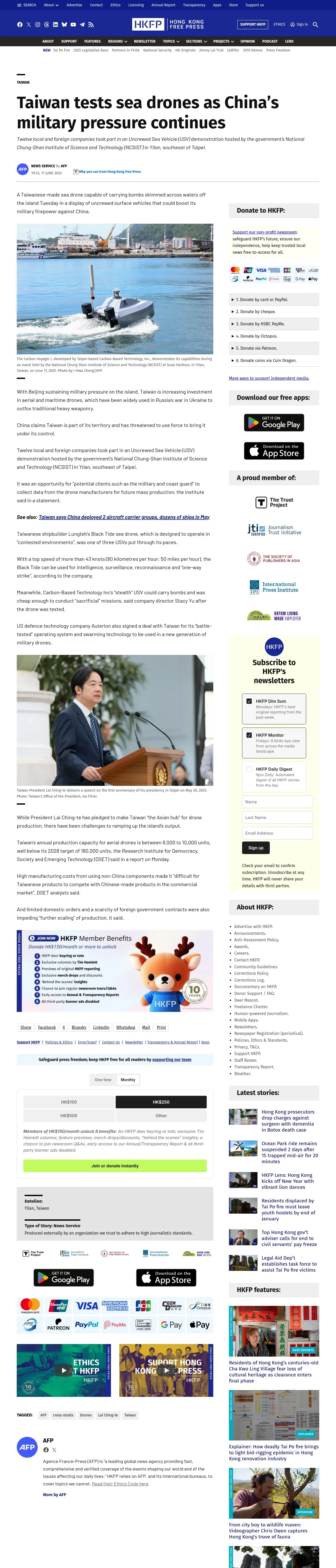 https://hongkongfp.com:443/2025/06/17/taiwan-tests-sea-drones-as-chinas-military-pressure-continues/
