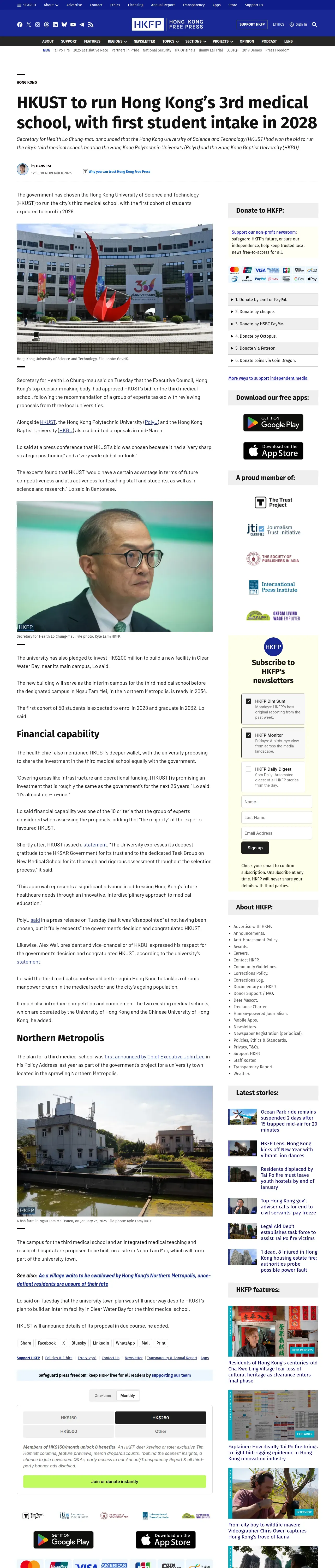 https://hongkongfp.com:443/2025/11/18/hkust-to-run-hong-kongs-3rd-medical-school-with-first-student-intake-in-2028/
