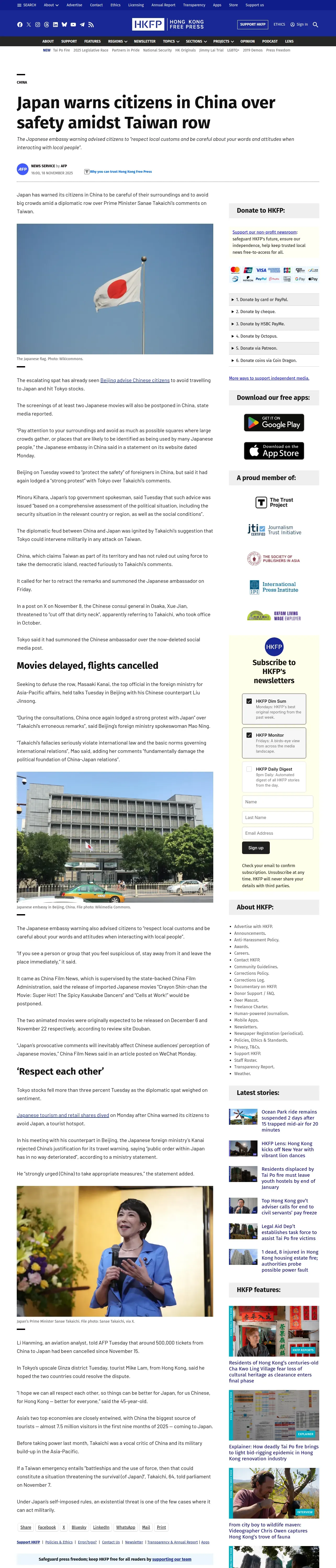 https://hongkongfp.com:443/2025/11/18/japan-warns-citizens-in-china-over-safety-amidst-taiwan-row/