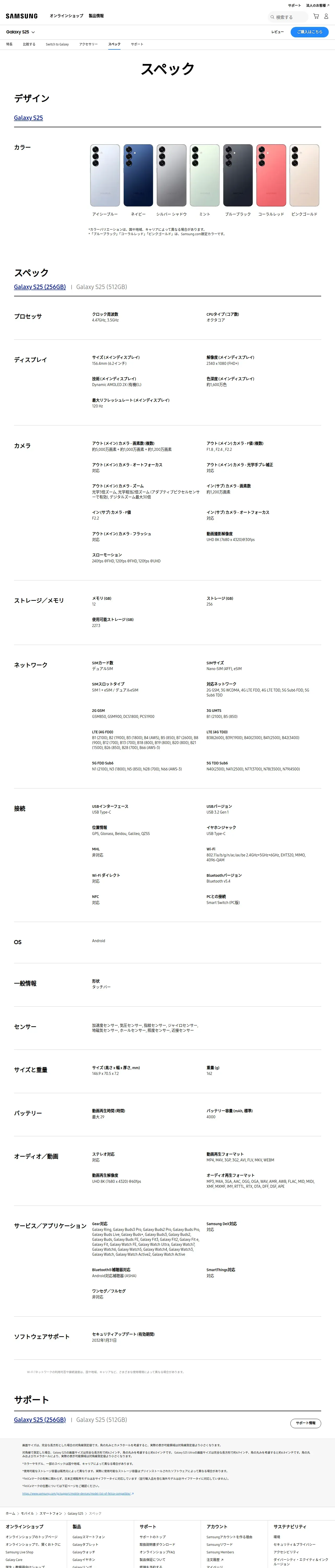 https://www.samsung.com:443/jp/smartphones/galaxy-s25/specs/