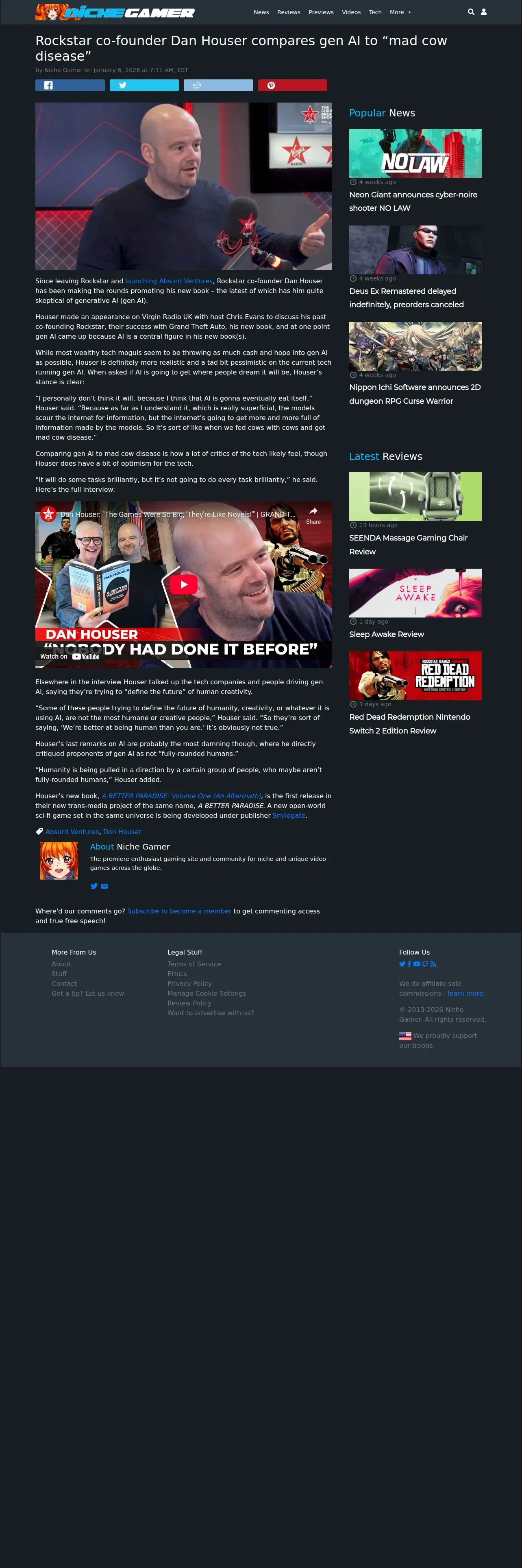 https://nichegamer.com:443/rockstar-co-founder-dan-houser-compares-gen-ai-to-mad-cow-disease/