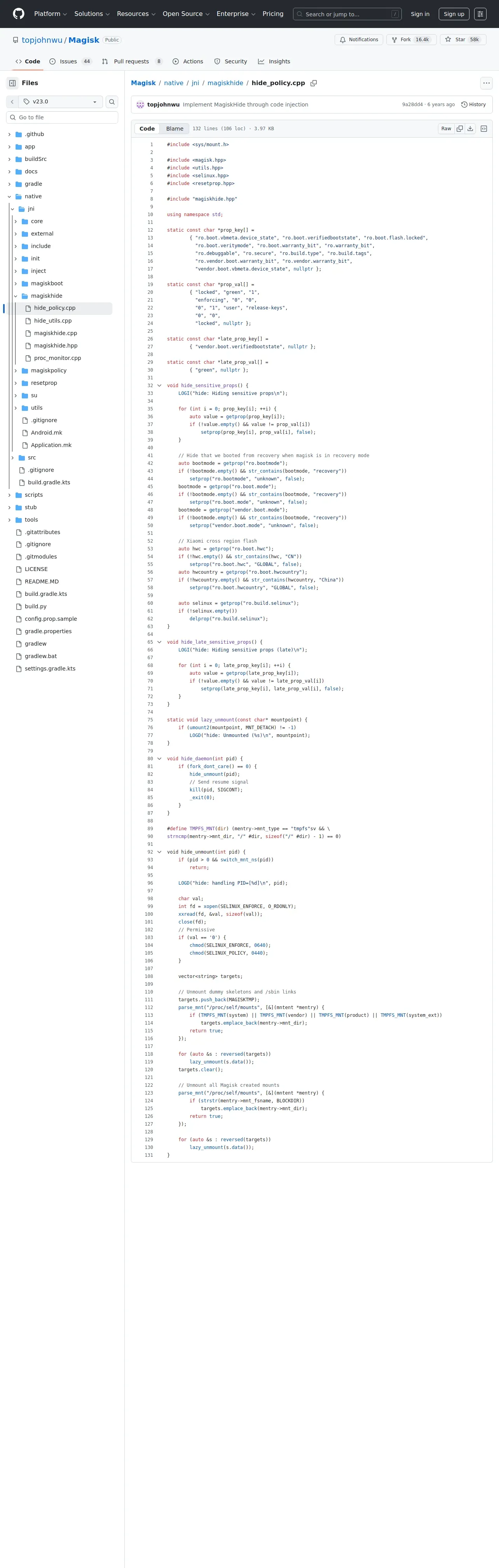 https://github.com:443/topjohnwu/Magisk/blob/v23.0/native/jni/magiskhide/hide_policy.cpp