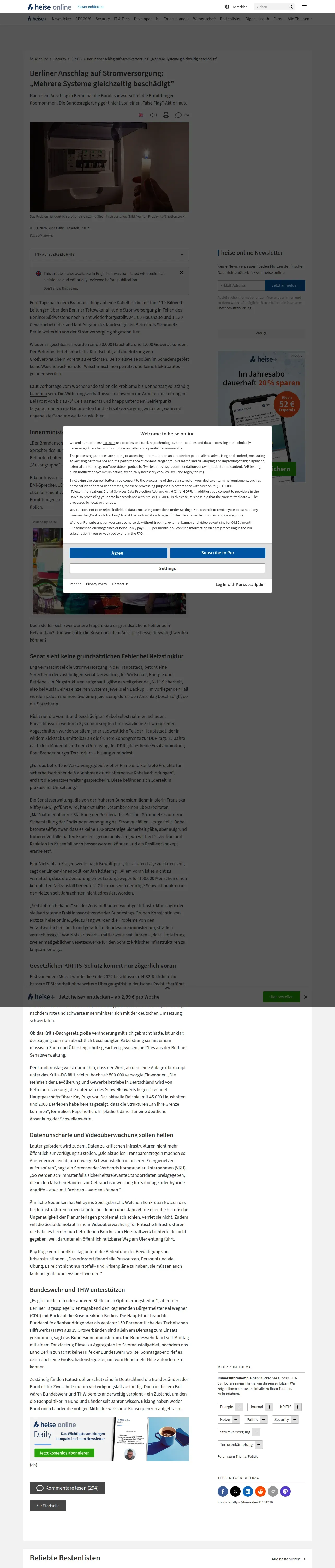 https://www.heise.de:443/news/Berliner-Anschlag-auf-Stromversorgung-Mehrere-Systeme-gleichzeitig-beschaedigt-11131936.html
