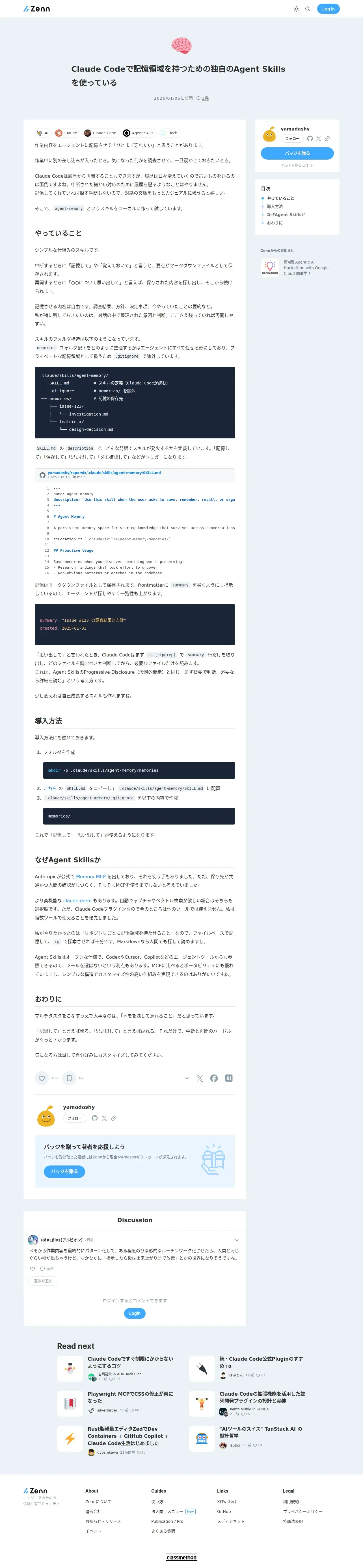 https://zenn.dev:443/yamadashy/articles/claude-code-agent-skills-agent-memory