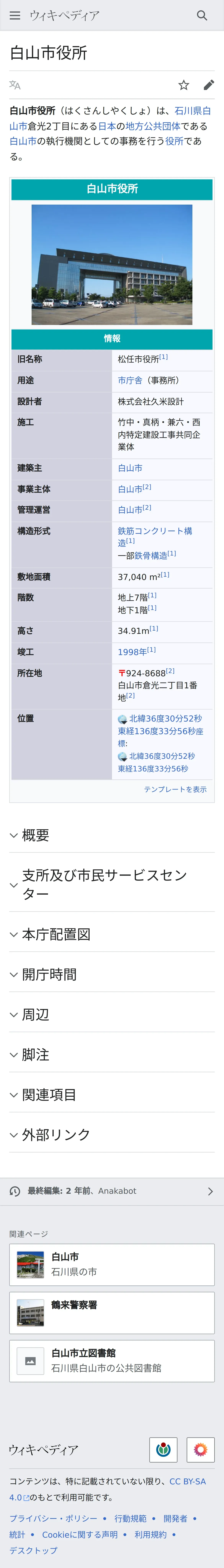 https://ja.wikipedia.org:443/wiki/%E7%99%BD%E5%B1%B1%E5%B8%82%E5%BD%B9%E6%89%80